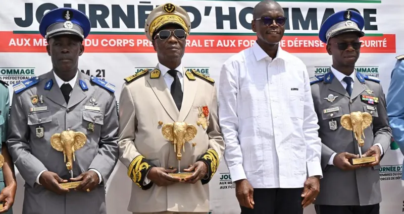 La région de la Marahoué a vécu ses agents dévoués ce samedi 21 février 2026 à la Place Tchin-Tchin de Bouaflé où la cérémonie d’hommage a réuni le Corps préfectoral et les Forces de Défense et de Sécurité (FDS) autour d’une même idée : la reconnaissance.