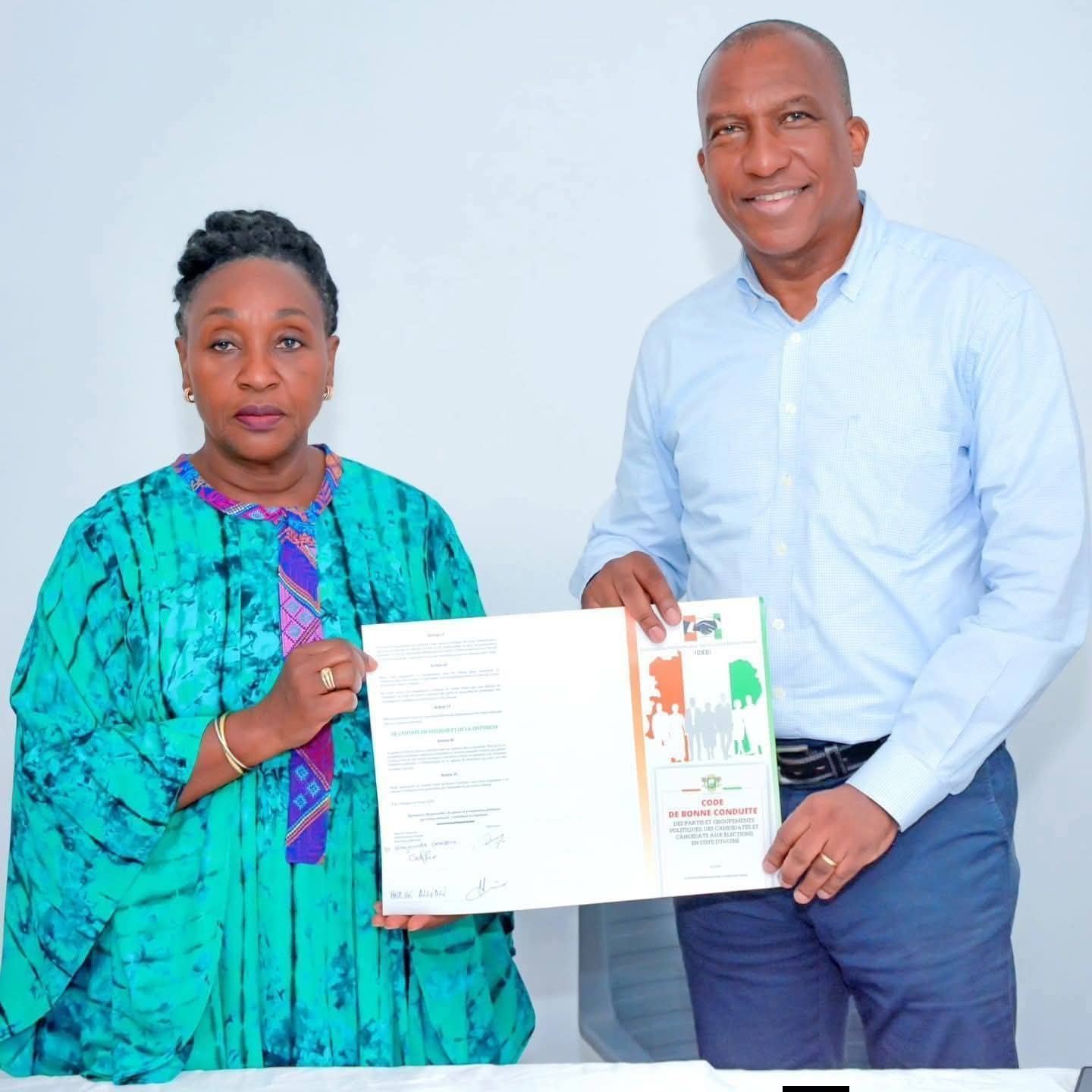 À une semaine de la reprise du scrutin législatif prévue le 21 février 2026 à Toumodi, l’hôtel Famien 1 a accueilli, le samedi 14 février, la cérémonie de signature du Code de bonne conduite par les deux candidats en lice pour la députation de Toumodi-Commune : Raymonde Goudou Coffie (RHDP) et Hervé Alliali (PDCI-RDA).