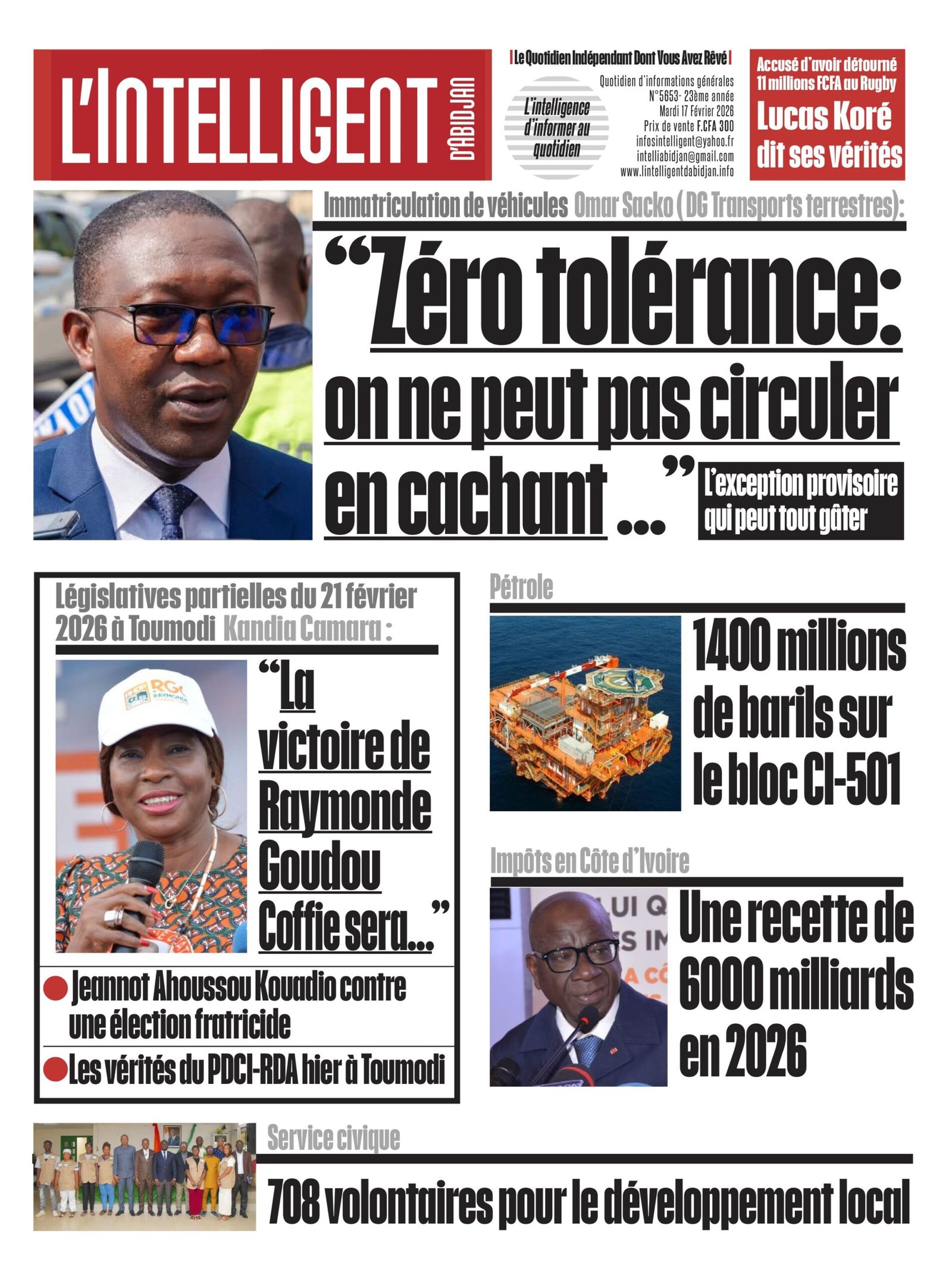 À lire aussi le compte rendu du premier jour de campagne des candidats du Rhdp et du Pdci pour les législatives partielles du 21 février 2026 à Toumodi; 1400 millions de barils de pétrole découverts sur le bloc CI-501; Une recette de 6000 milliards en 2026 au niveau des impôts en Côte d’Ivoire.