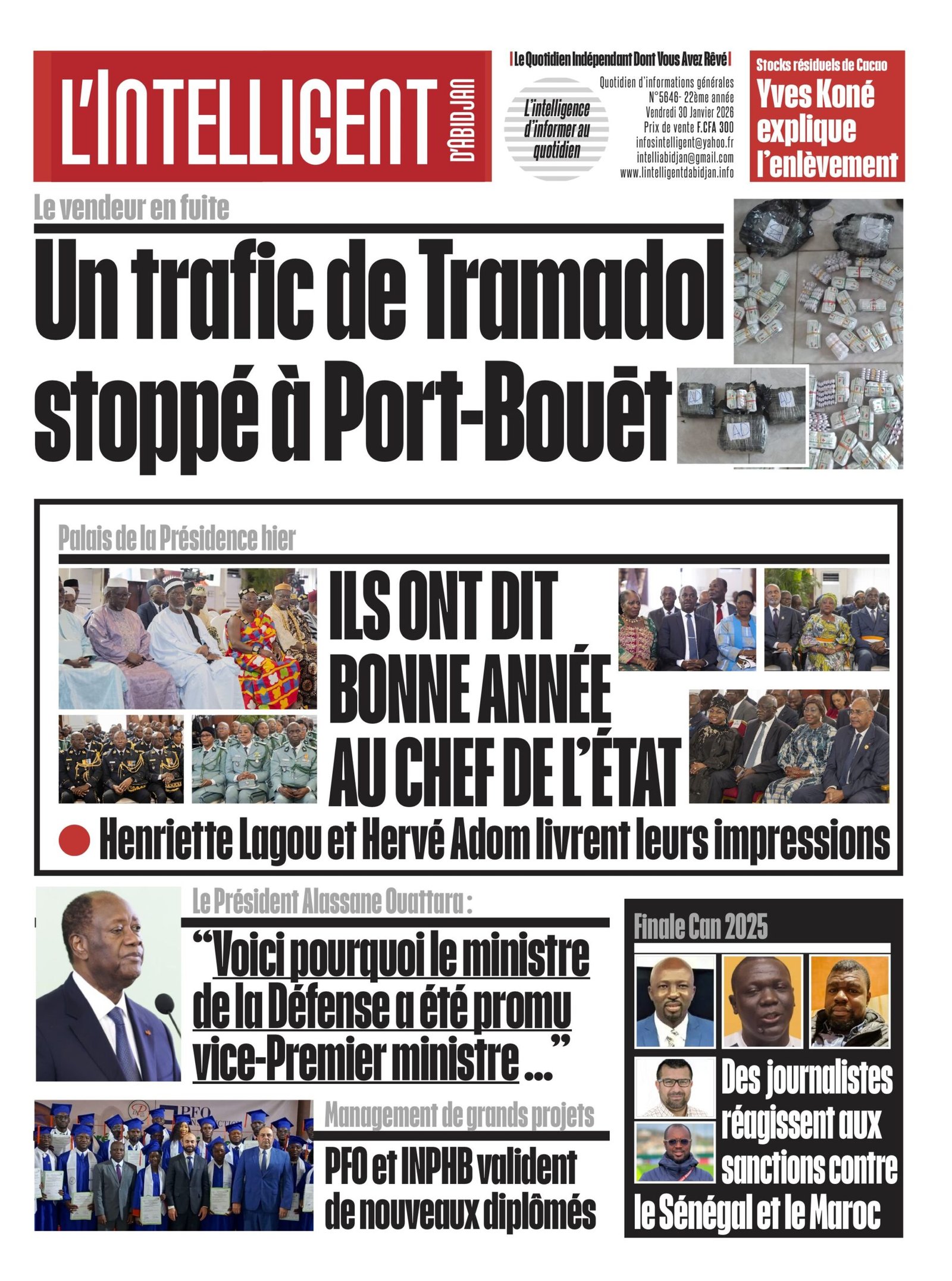 À lire aussi ILS ONT DIT BONNE ANNÉE AU CHEF DE L’ÉTAT au Palais de la Présidence hier et la réaction d’Henriette Lagou et d’Hervé Adom ; Le Président Alassane Ouattara explique pourquoi le ministre de la Défense a été promu vice-Premier ministre ; PFO et INPHB valident de nouveaux diplômés au niveau du management de grands projets.