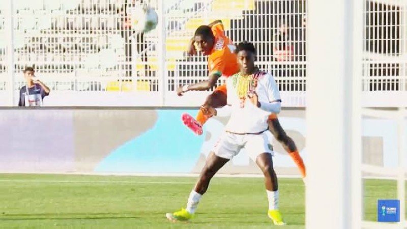 À la 18e minute, Haïdara marque son 6e but du tournoi en doublant la mise sur penalty, après une faute de Soumaïla Fané sur Doumbia Vabou. Puis, à la 41e, Alynho envoie un centre millimétré à Dieudonné Diarrassouba qui, d’une frappe en demi-volée déviée par un défenseur malien, termine sa course au fond des filets pour le 3-0.